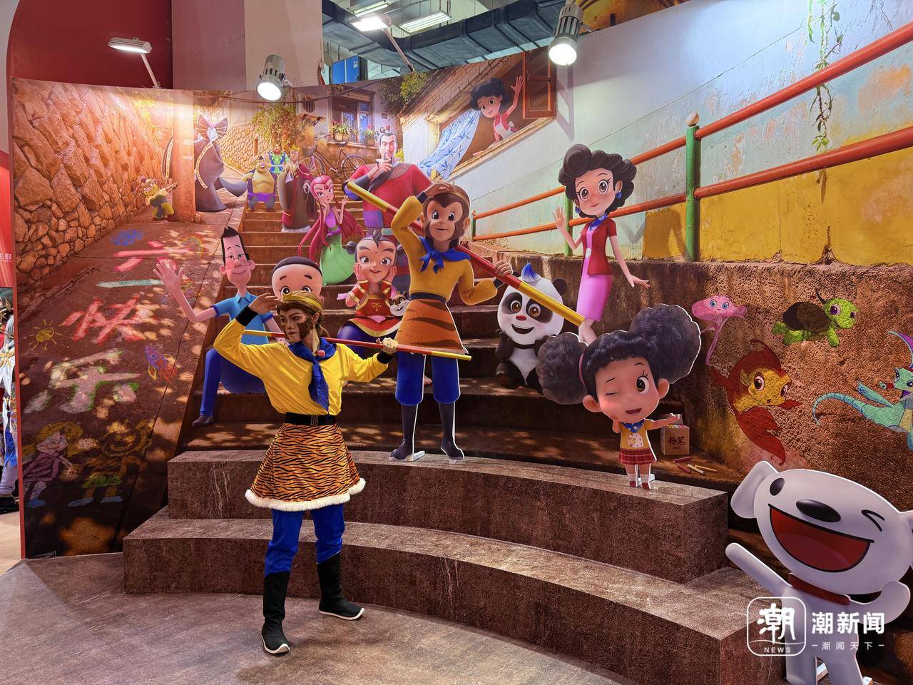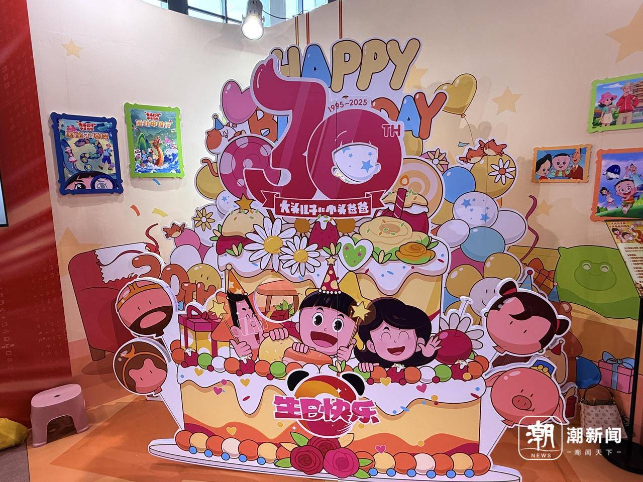 在央漫经典形象集合的背景墙下,90后郑女士一脸微笑地比耶留念。“一晃眼,大头儿子都已经诞生30周年了,但无论过去多少年,《大头儿子和小头爸爸》《西游记》这些作品都是我们这一代人心中顶级的动画片。”