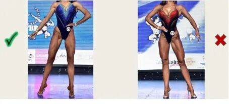 3.半决赛、决赛第一轮穿晚礼服走模特步按T路线展示自然身形做四个转向。第二轮穿紧身连体健身模特泳衣做四个转向。