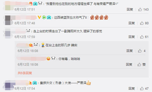 有网友表示,君泽能在别的地方熠熠生辉也感到与有荣焉。当然,除了夸赞穿着蓝色西装的君泽非常帅气以外,也有网友调侃君泽成为了皇族的形象大使。