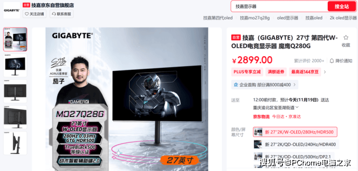 目前技嘉MO27Q28G显示器在京东技嘉自营旗舰店售价2899元,还有PLUS立减和满减券等活动,感兴趣的朋友可以前往了解详情。