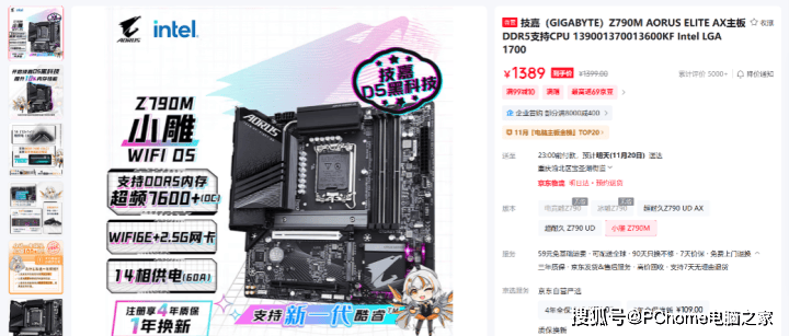 技嘉Z790M小雕WIFI主板配备Wi-Fi 6E无线GbE有线网卡,轻松享受高速的有线、无线网络连接。目前这款主板在京东商城技嘉自营旗舰店到手价仅需1389元。