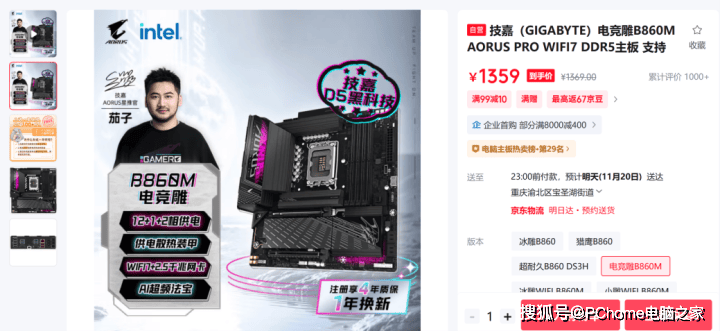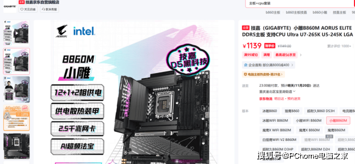 当然,可能还有些同学想要更亲民的酷睿Ultra 200S平台,那么技嘉B860M AORUS PRO WIFI7主板(技嘉B860M电竞雕)提供了另一个优质选择。这款主板虽然定位主流市场,但在功能和品质上毫不妥协,更重要的是价格仅售1359元。