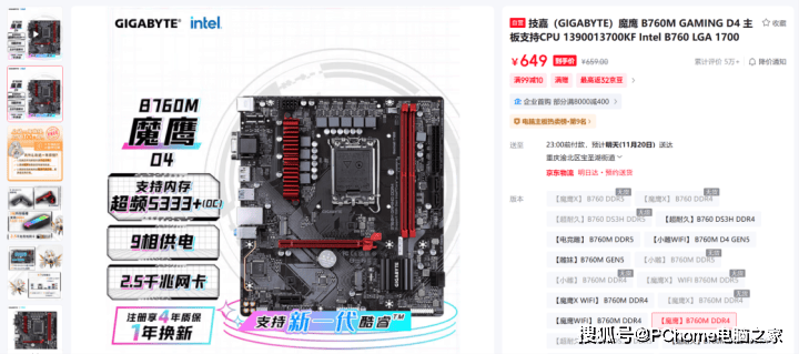 对于电子产品来说,许多玩家都有“买新不买旧”的执念,但其实在新老产品并行销售的时期,一些相对更旧平台的产品反倒是更合适的选择,他们不仅更实惠,也完全能够满足不同场景用户的需求。比如适配第12、13、14代酷睿处理器的Z790和B760平台就是经济实适用型,甚至是支持DDR 4内存的技嘉魔鹰B760M仅需649元,性价比拉满,也大幅降低了整个装机成本。