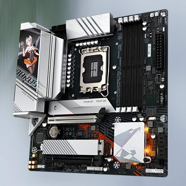 刚入坑 DIY 的新手玩家,我们十分推荐这款B760M AORUS ELITE雕妹主板,这款主板的外观相对来说更加明朗,黑白双色机身辅以橘黄色灯光饰条提亮,散热装甲表面还印有“雕妹”主题贴画,整体风格活泼明快,充满青春朝气,因此收获了大批学生党的喜爱。