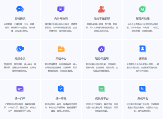 以“统一入口、深度集成、场景适配”为核心,打造覆盖政务沟通、协同办公、业务处理的一体化平台,打破信息孤岛,提升政务协同效率。