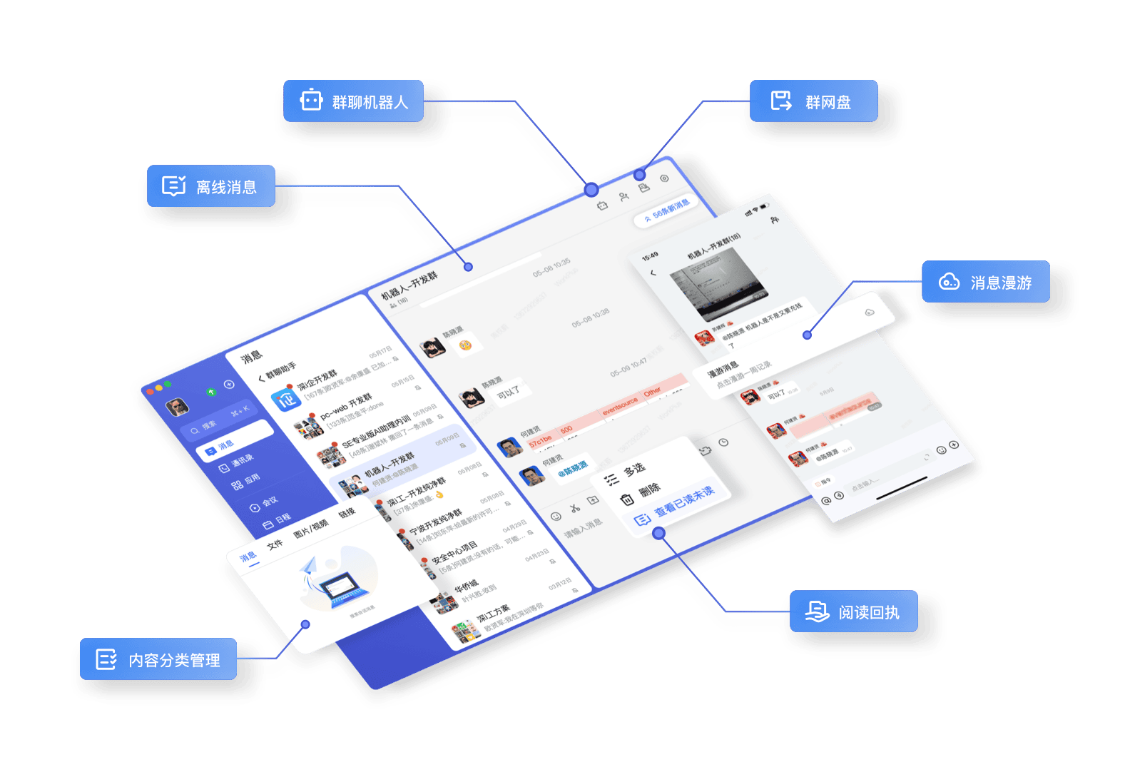 统一入口设计与企业级大并发架构,适配不同规模企业需求。BeeWorks以统一入口整合所有办公功能与业务系统,通过开放API接口无缝对接OA、CRM等工具,打破信息孤岛,让办公流程更顺畅。依托分布式微服务架构,平台具备卓越的高可用、高并发能力,可支撑超十万用户大规模部署,轻松应对企业峰值通讯压力,无论是中小型企业还是大型集团,都能精准匹配其办公诉求。