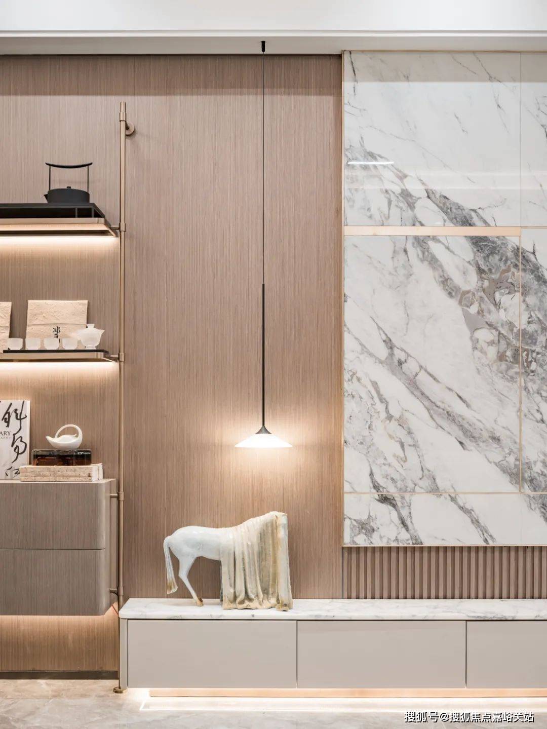 ,包括客餐厅智能灯光控制、玄关天花感应灯、USB插座点位预留、感应夜灯、电动窗帘插座预留(客厅及主卧)、智能安防一键报警系统等。样板间实景图丨仅供参考