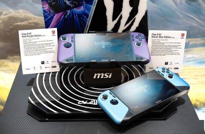 不要忘了,微星还发布了Claw 8 AI+ 掌机冰川蓝版本,这是微星热门CLAW 8系列掌机的全新特别款。该版本采用冰川蓝配色,弧形机身上带有冰蓝色调。巧妙融合了电竞元素和年轻活力,也非常值得关注!