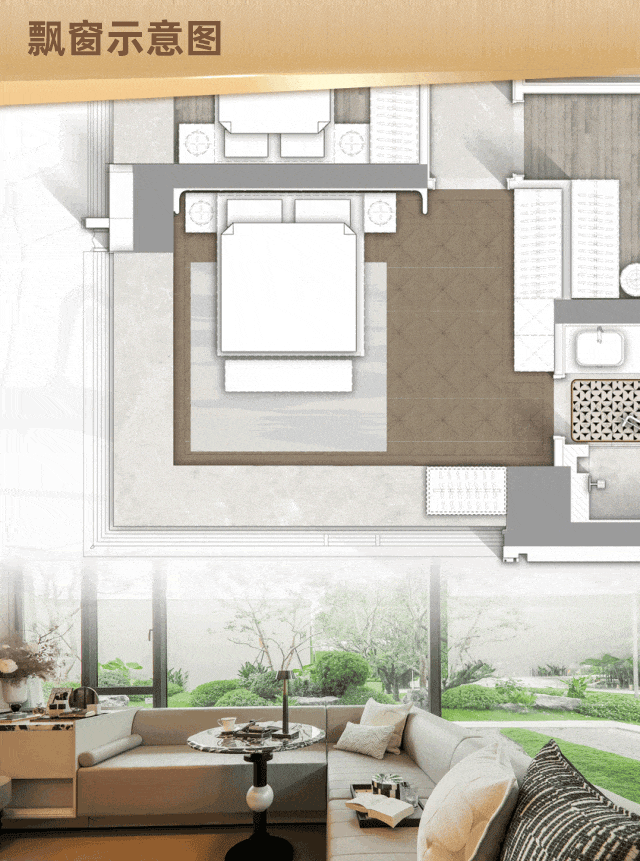 交付时,项目的飘窗尺度还可进一步优化,额外拓展出可观的使用面积,使得空间利用率达到了新的高度。