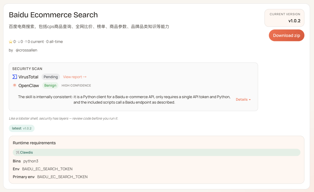 今天又有一个重磅能力刚刚上线——百度优选官方电商 Skill 正式上架了 ClawHub。