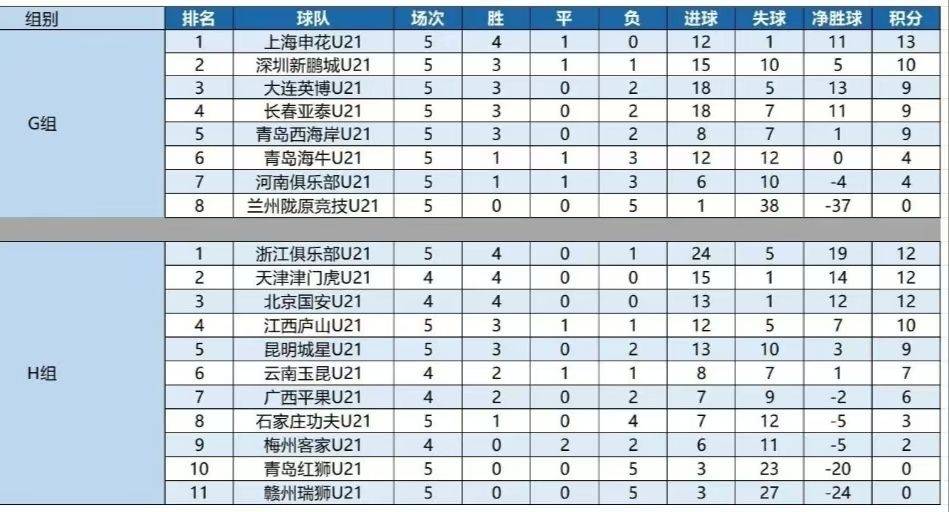 中国足球青少年精英联赛(U-21组),包括资格赛、预赛、晋级赛、决赛4个阶段,根据已经结束的6轮资格赛成绩进行分组,预赛G组8队进行双循环14轮比赛,H组11队进行单循环10轮比赛,最终G组前四名与H组5-8名进入下阶段的I组,G组后四名与H组前四名进入J祖,G组最后三名被淘汰。晋级赛采取组内单循环7轮比赛,两组前四名进入决赛的争冠组,后四名进入决赛的排位组。目前预赛前五轮已经结束,后续比赛日期等待官宣。