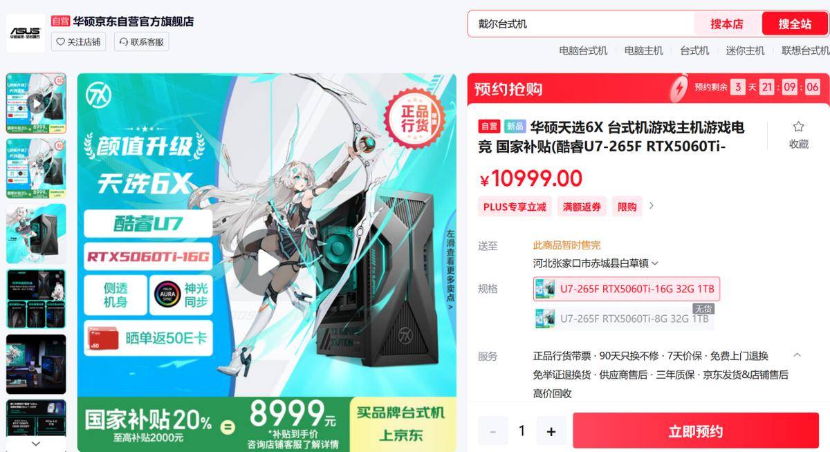 目前全新一代华硕天选6X台式机,已于5月26日上午十点在华硕京东自营官方旗舰店上架开售,开售活动价:10999。