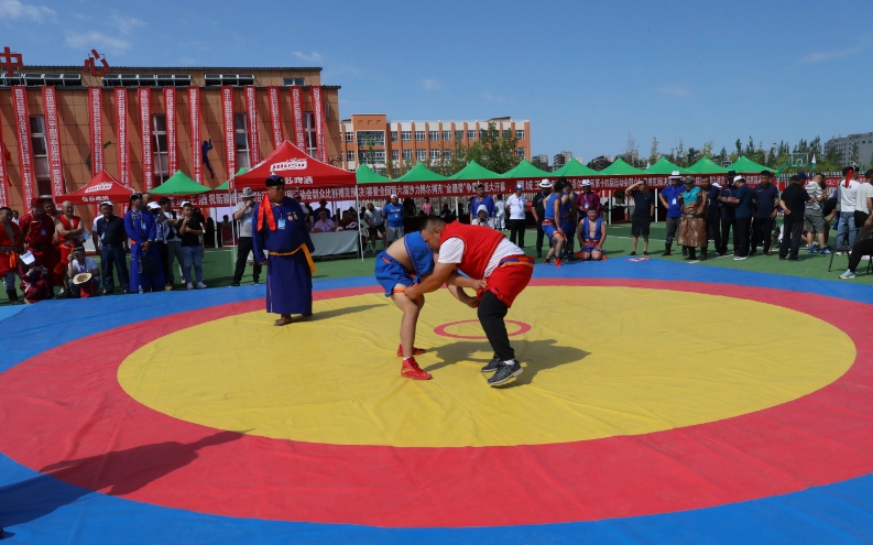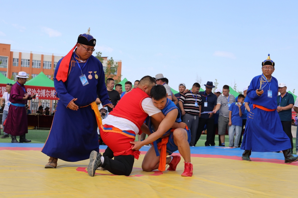 7月23日,自治区第十四届运动会群众比赛搏克预(决)赛暨全国第六届沙力搏尔搏克“金腰带”争霸赛在乌苏市全民健身中心落幕。