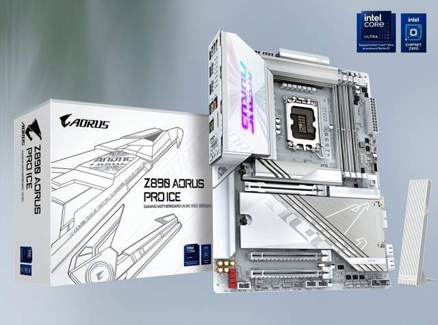 Z890 AORUS PRO ICE的散热表现同样惊艳,机身覆盖全供电区域的Epic VRM散热装甲,散热面积较常规设计提升四倍之多,可实现快速降温;再配合强化热管与高工艺导热垫的协同作用,即便在高强度供电负载下,也能稳定控制机身温度,杜绝性能降频。